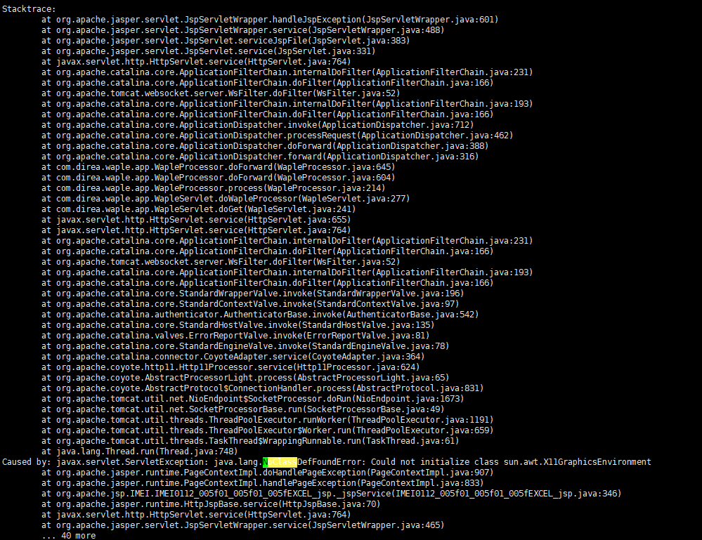 Caused by : javax.servlet.ServletException: java.lang.NoClassDefFoundError: Could not initialize class sun.awt.XllGraphicsEnvironment