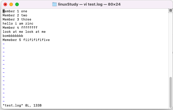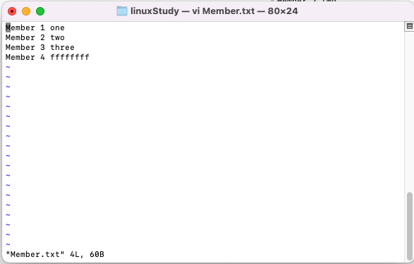 위 내용을 가진 로그파일에서 grep을 활용하여 Member로 시작하는 행만 따로 파일로 만들어 보겠습니다.