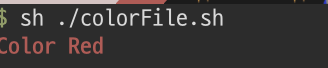 위 처럼 shell을 만들고 실행하면 문자열이 빨간색으로 나오는 것을 확인할 수 있습니다.