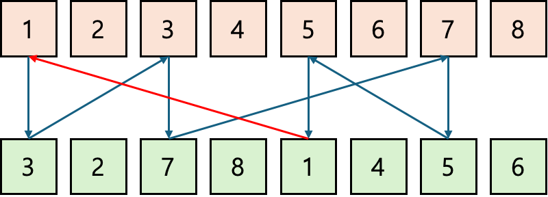 순열 배열의 첫번째 인덱스인 1부터 시작해서 가르키는 순열을 그림으로 나타내보면 다음과 같습니다.