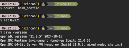 alias setJava21='export JAVA_HOME=$(/usr/libexec/java_home -v 21)'