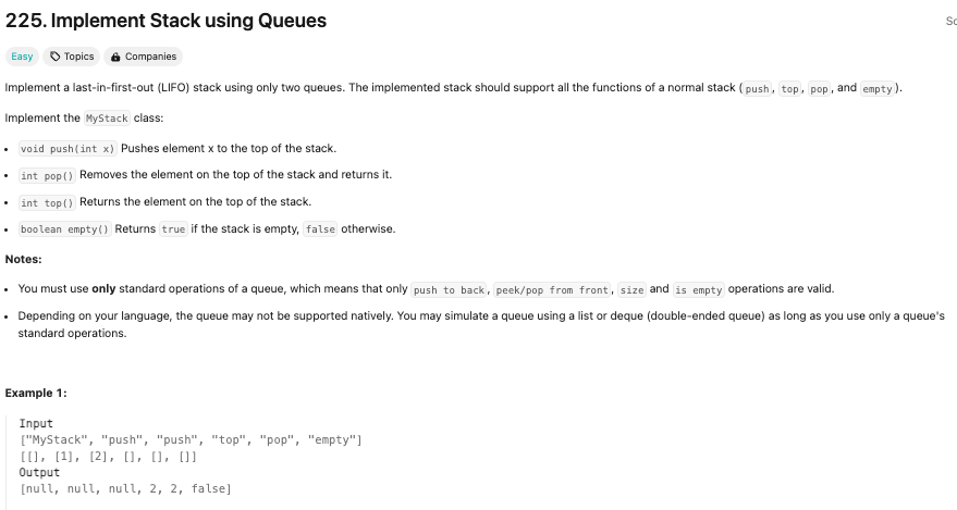 | 99클럽 코테 스터디 4일차 TIL + LeetCode 232 (Implement Queue using Stacks, java) (0) | 2025.04.03 |
