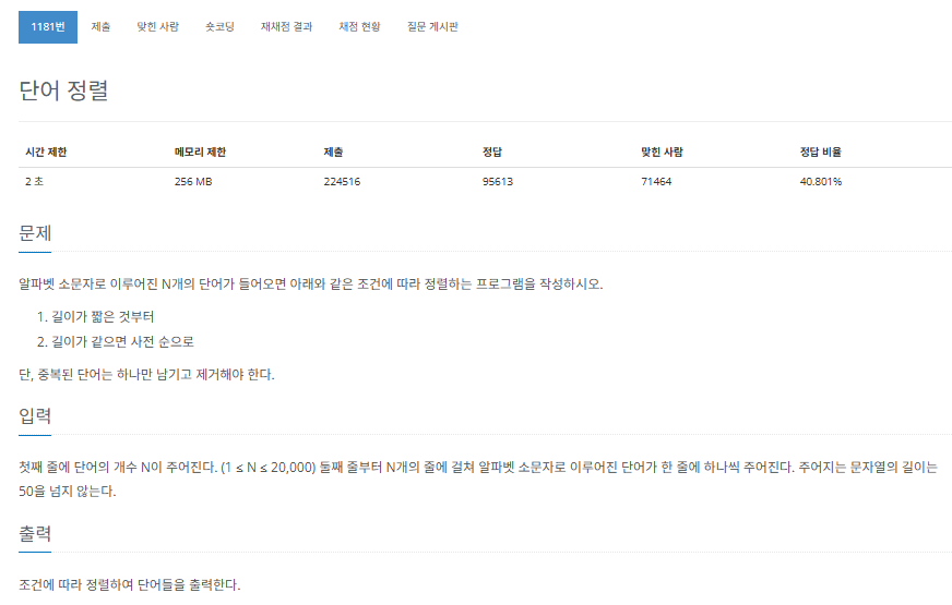 문제를 풀기위해서는 주어진 조건에 따라 문자열을 정렬시켜 줘야합니다. 정렬 조건을 직접 제시하는 것으로 봐서 java의 Collections를 활용해서 정렬 조건을 커스텀해서 문제를 풀 수 있을 것 같습니다.