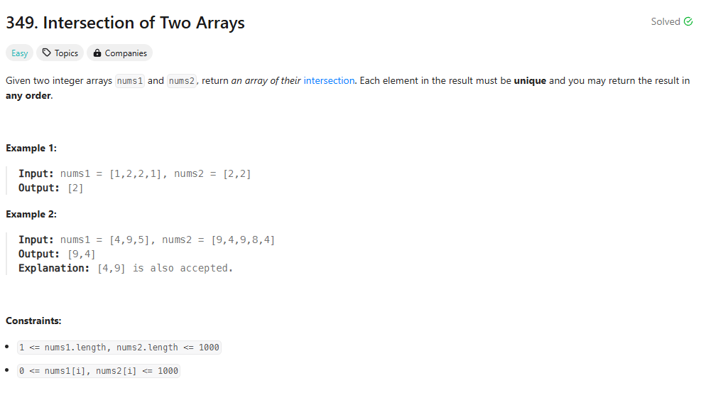 public int[] intersection(int[] nums1, int[] nums2) {