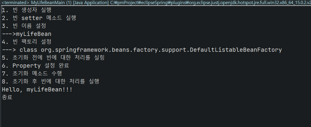 System.out.println("8. 초기화 후 빈에 대한 처리를 실행");