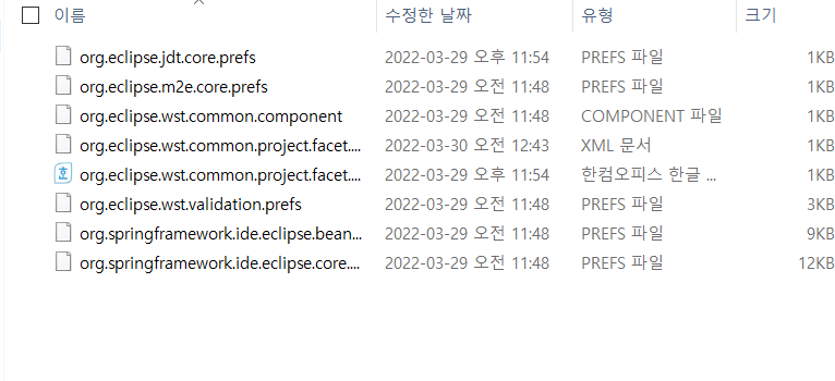 우선 해당 프로젝트 경로로 이동해서 .settings 폴더로 들어갑니다.
