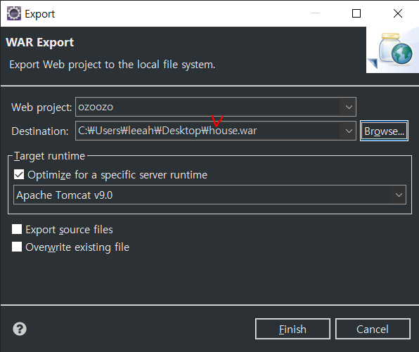 그 다음 위와 같이 체크해주고 저장하게 되면 house.war파일이 성공적으로 export됩니다.